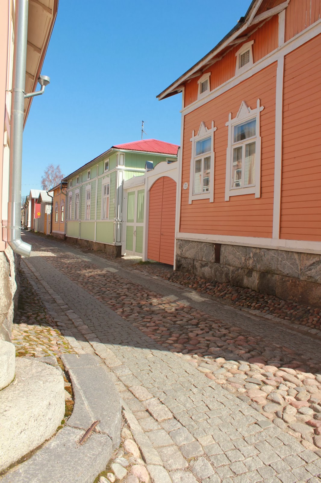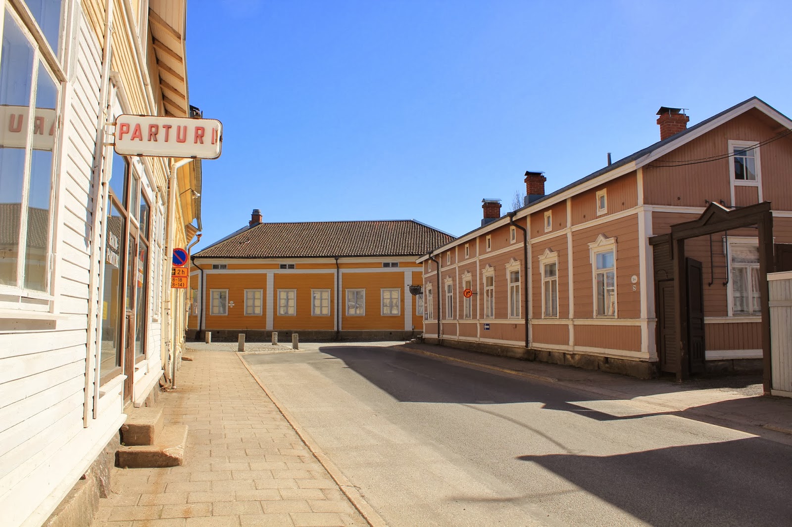 Kevät auringon porottaessa, tuulen tuivertaessa, pipo syvällä päässä vaikka näistä kuvista sitä ei uskoisikaan. Autiolta näyttää Vanhan Rauman kadut keskellä kirkasta päivää. Kaikki ei lähde näillä keleillä ulkosalle.
