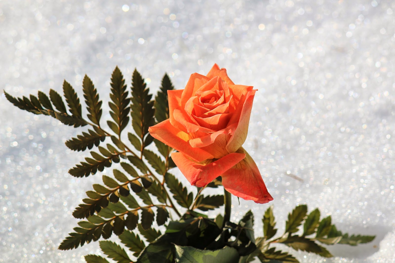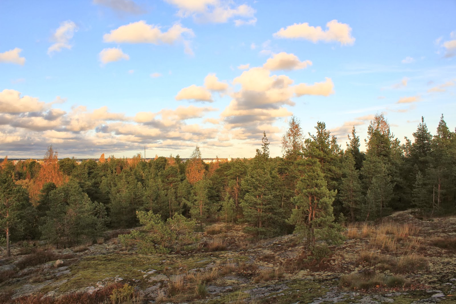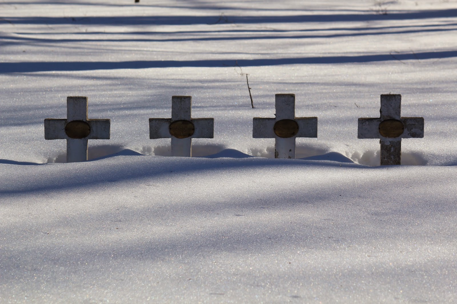 Aurinko alkaa jo laskemaan ja hämärä saapumaan. Lumi valaisee ja aurinko heijastuu monesta eri pinnasta antaen valoa.