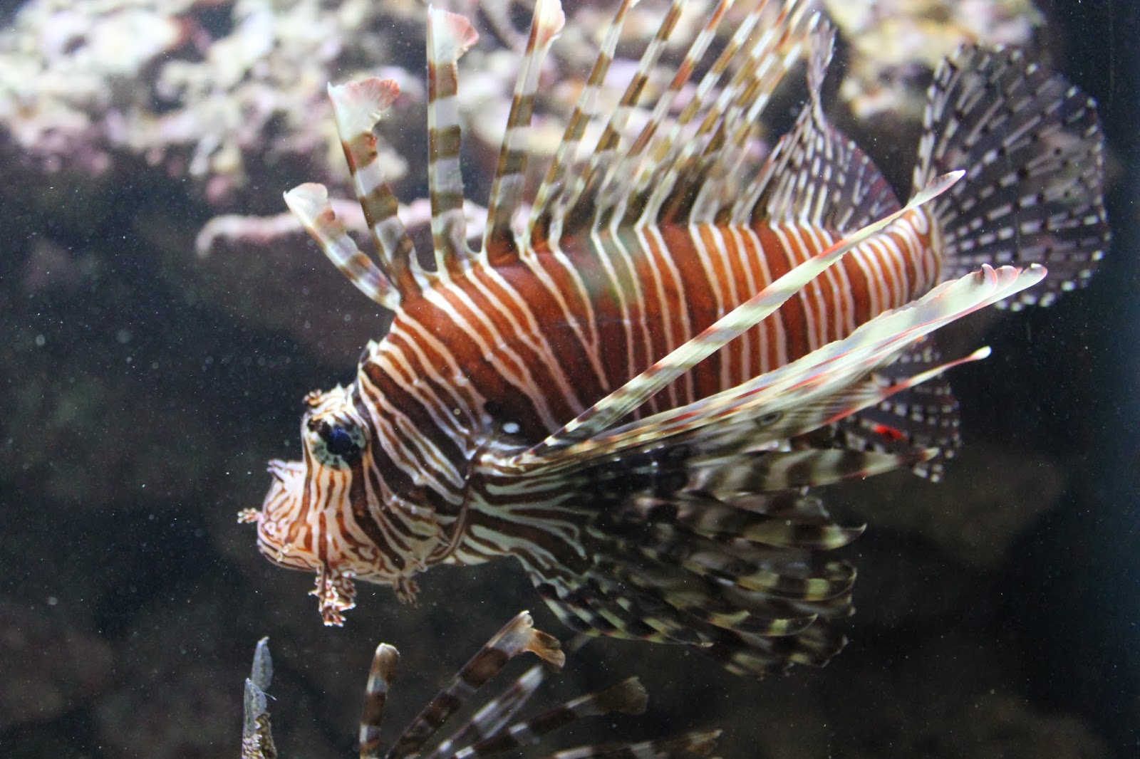 Käytiin myös paikallisessa akvaariossa tutustumassa kaloihin ja muihin vedessä eläviin olentoihin. Yllätyin postitiivisesti että oikeat asetukset kamerassa niin sai sisätiloissa lasin läpi näinkin kivoja kuvia liikkuvista kaloista.