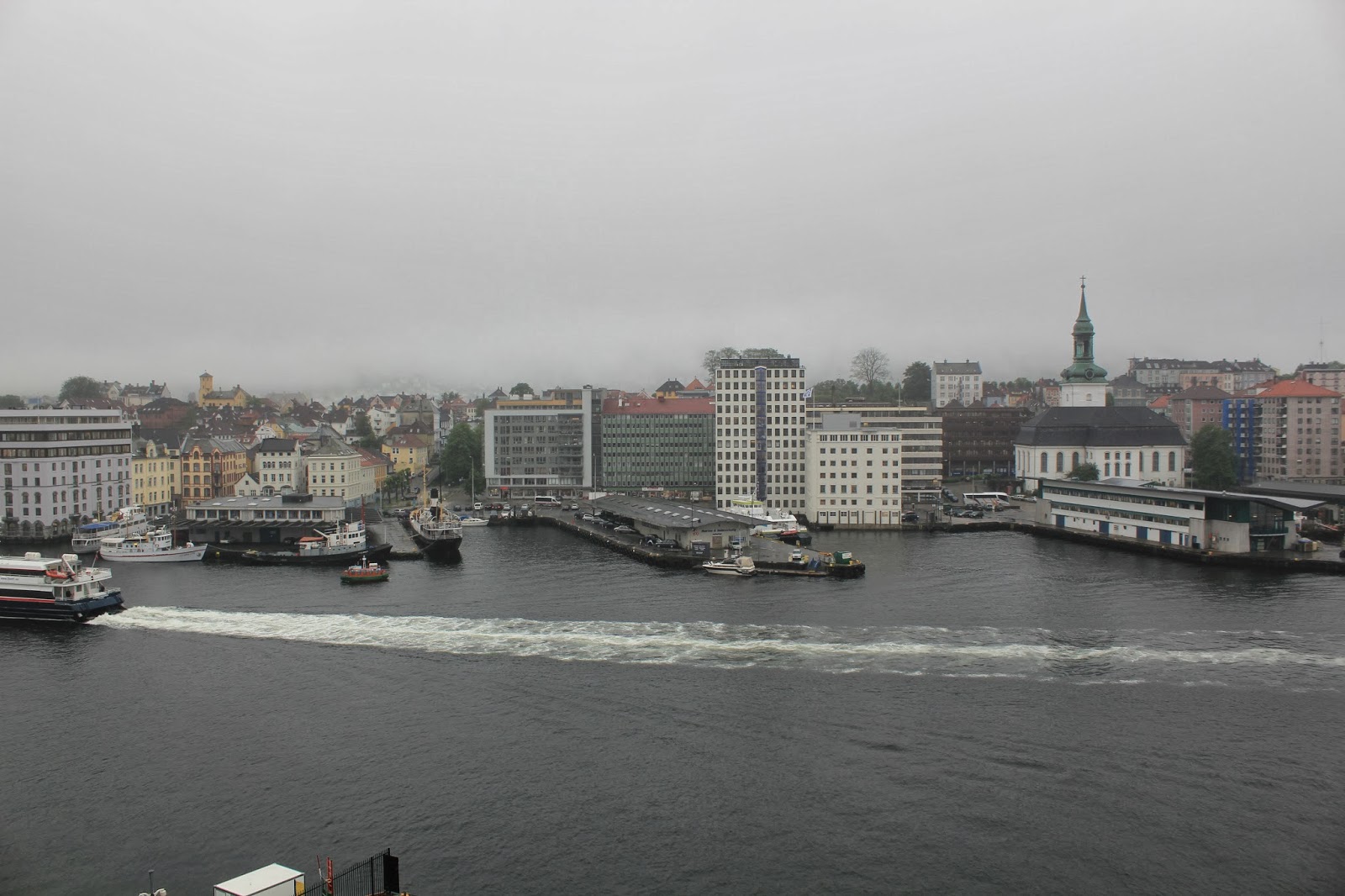 Sateisina päivänä oli kiva piipahdella kirkoissa ja museoissa. Kyllä, Bergenissä sataa jopa kesäisin. Museon katolta otettua kuvamateriaalia. .