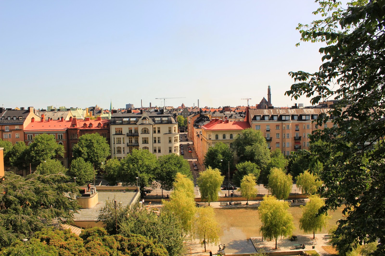 Observatorion kukkulalta otettu kuva alas Sveavägenille ja yli "lammen".