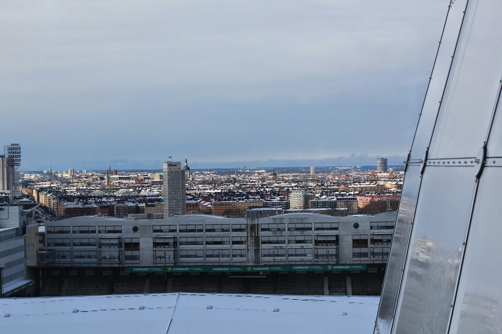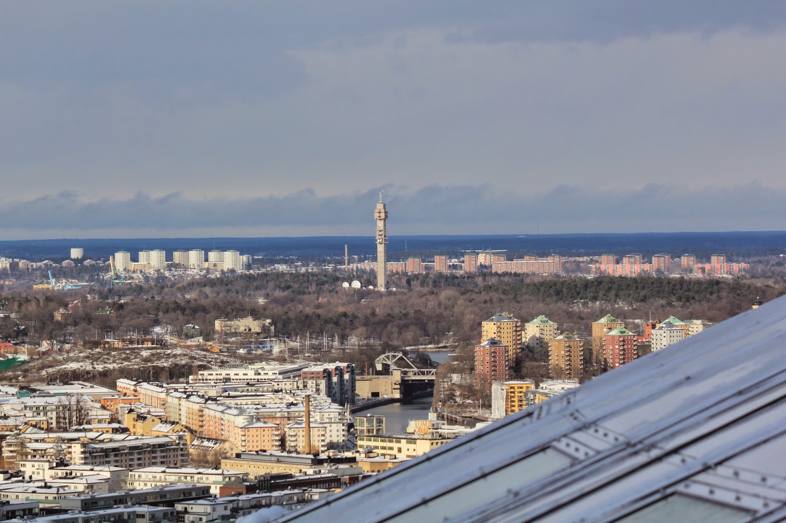 Ei ihan vieläkään täysin pallon päällä. Keskellä kuvaa komeilee 170 m korkea Kaknästorni.