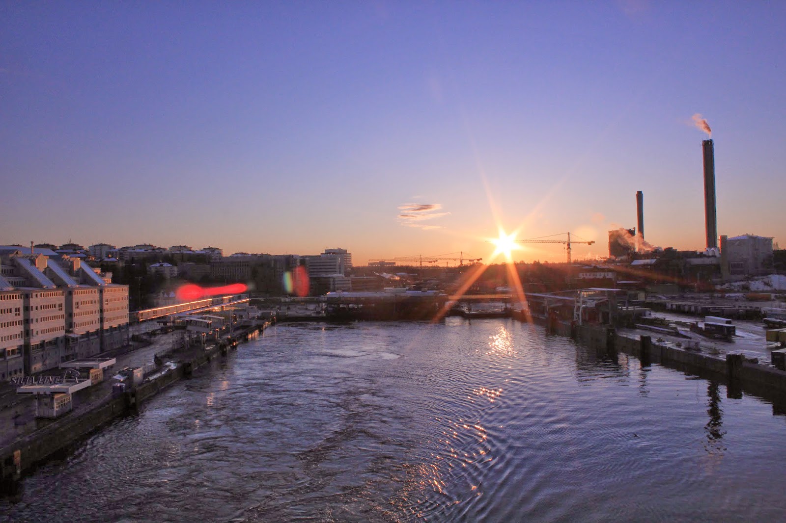 Värtanin satama keväisessä ilta auringossa päivän räntäsateen jälkeen.