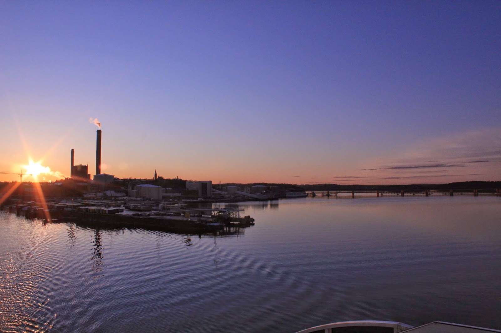 Sumuinen ilta Tukholma mereltä käsin eli kyllä Viking Linen laivan kannelta otettuna v.1980-82 ikivanhalla pokkari filmikameralla Yashica T4, joka oli valkoinen väriltään.