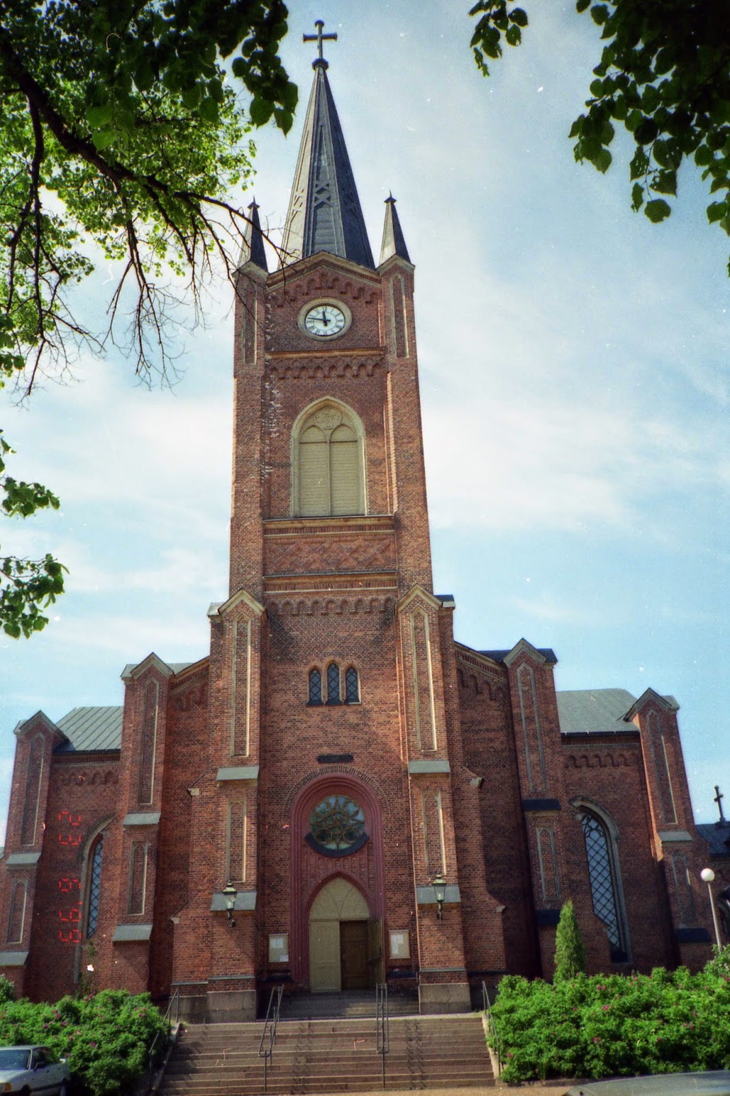 Loviisan kirkko valmistui 1865 ja on punatiilinen kirkko aivan keskustassa torin laidalla. Sonyn digikameralla.