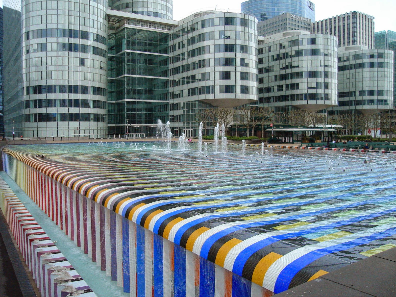 La Defense alueen yksi monista suihkulähde altaista. Samassa paikkaa hiukan eteenpäin puistoalueelta löytyi tämä puuauto, joka on suunniteltu puutarhaan istutuksia varten.