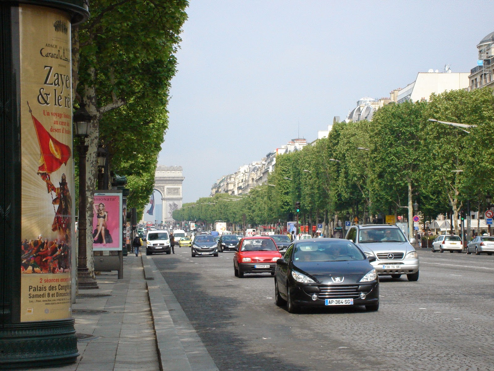 Champs Elysées katukuvaa ja taustalla siintää riemukaari eli Arc de Triomphe.