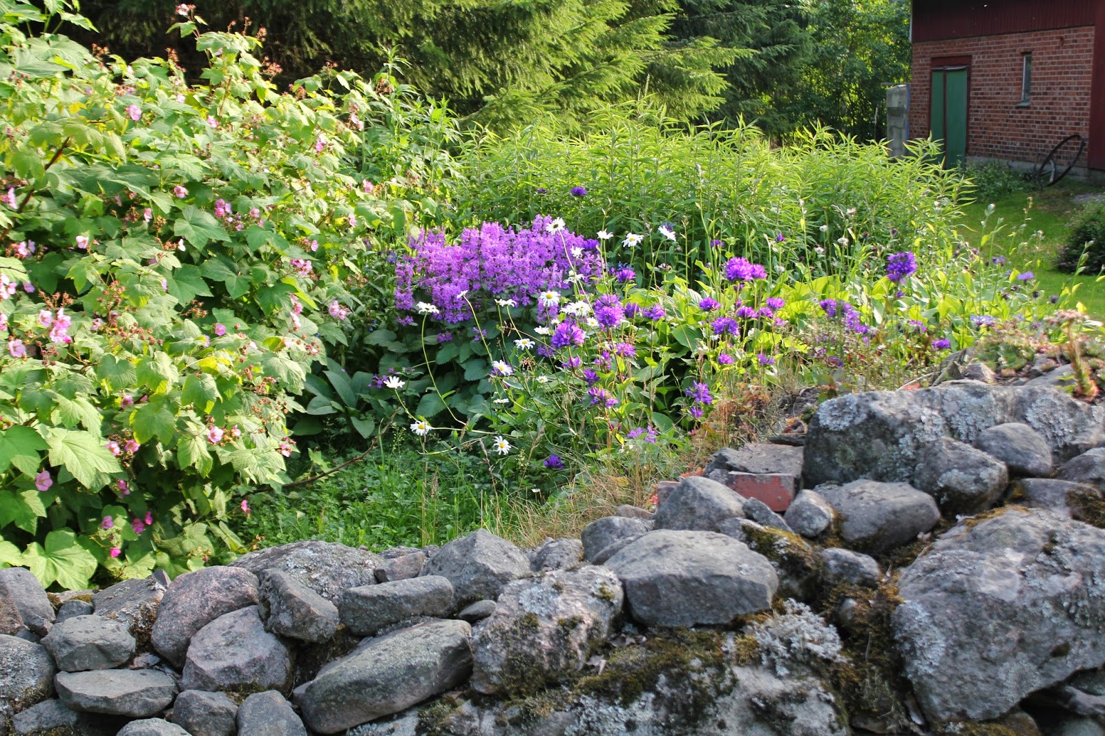 Hiukan kukkapenkkiä, ei toki omalta pihalta vaan Huhdalta kävelyllä ollessani.