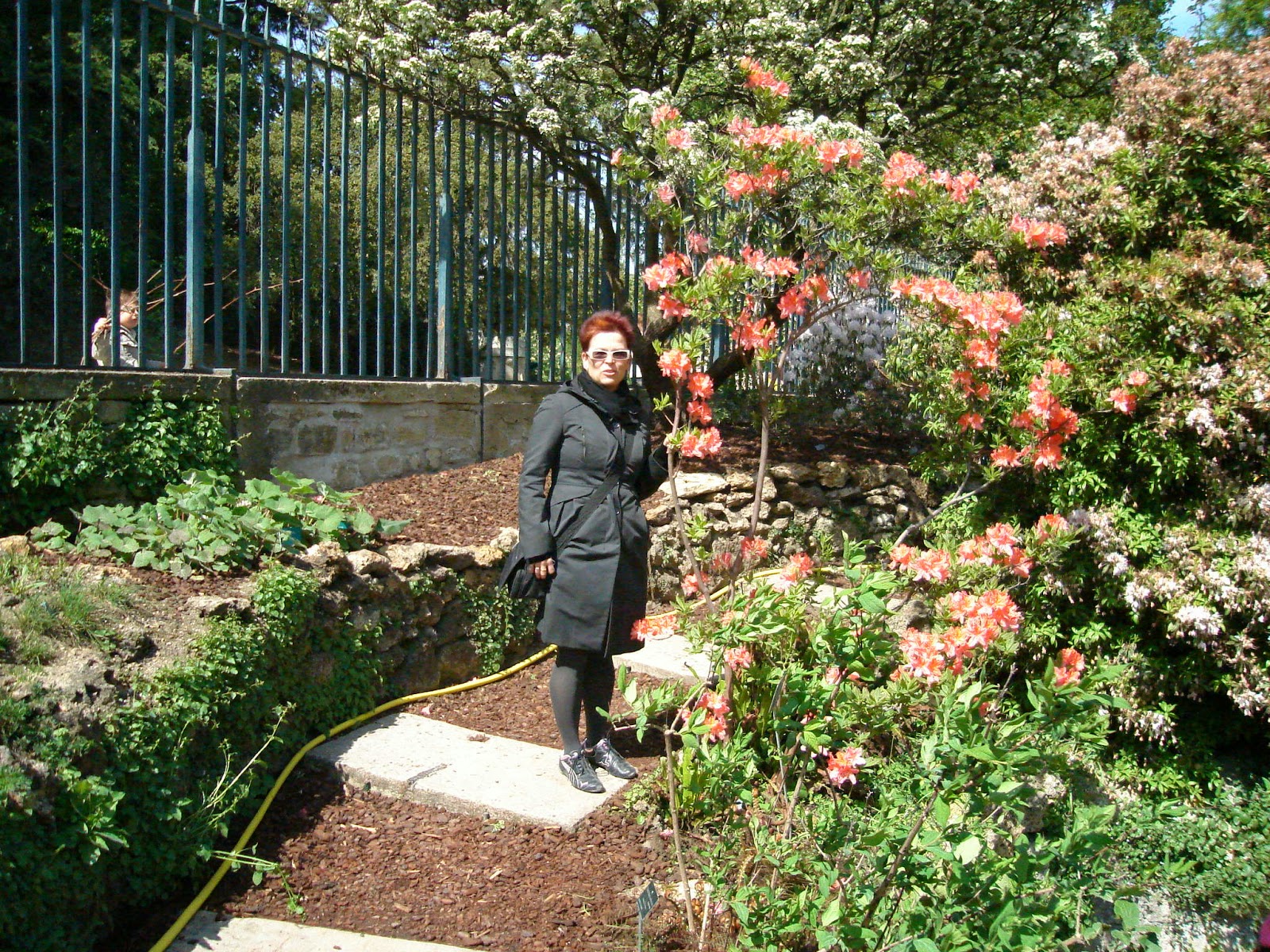 Versaillesin puutarhassa ihailemassa alku kesän kasvistoa. Tämä puska, jonka nimen lunttasin maasta törröttäneestä lapusta on täydessä kukoistuksessa, mutta nimestä ei harmainta hajua enää.